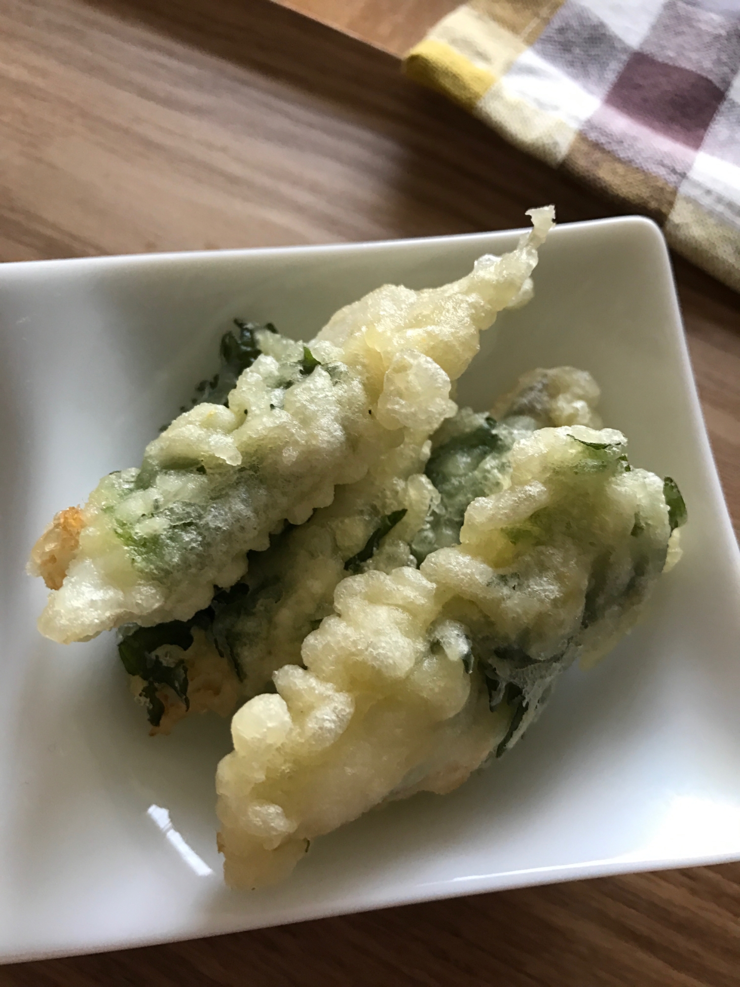 さよりと菜の花の天ぷら ベジタリアンミットゥンと肉食チャースケ